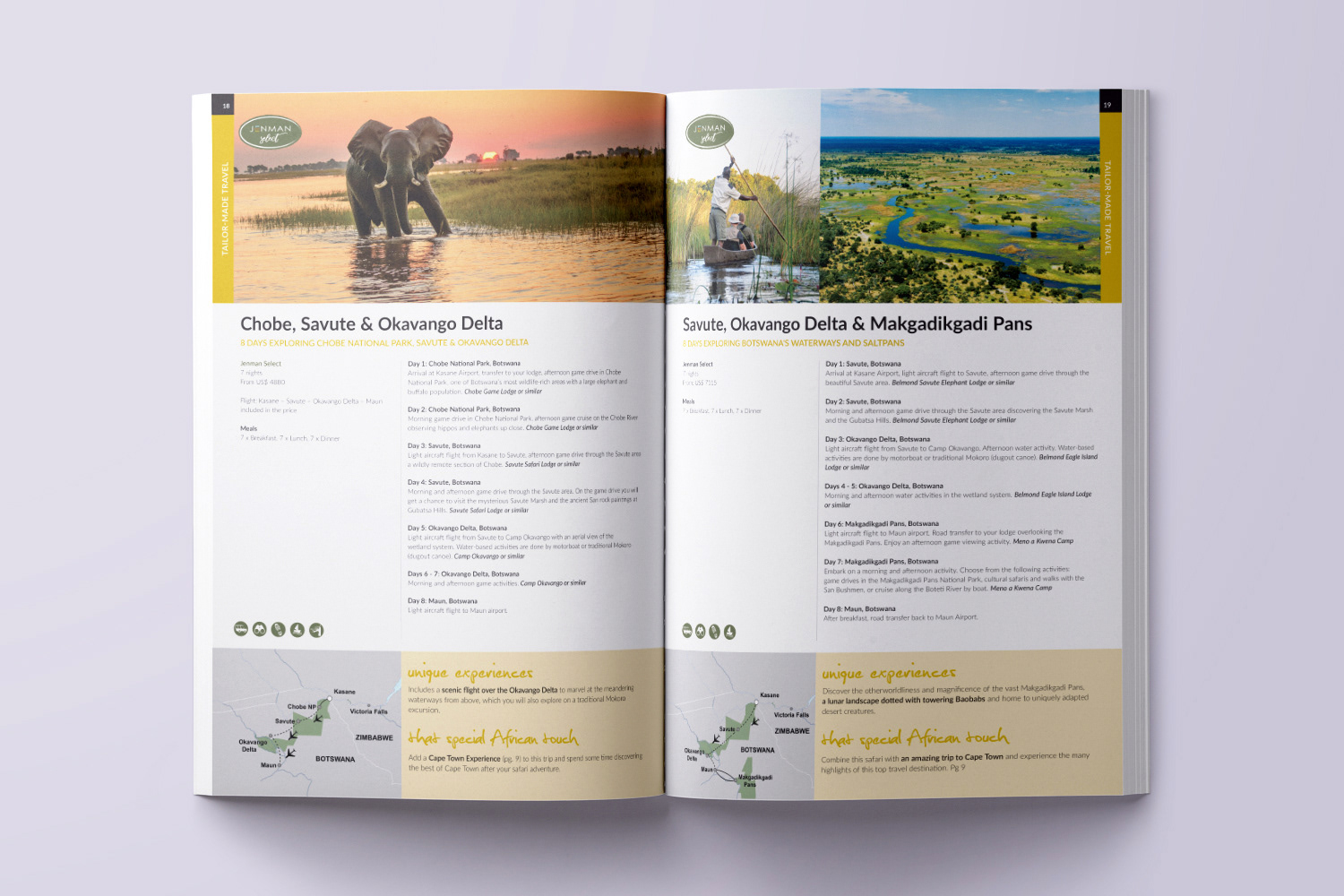 Jenman African Safaris is one of the leading tour operators in Southern Africa, East Africa and Madagascar. I was asked to design their 2020 brochure based on the design I created for their 2019 brochure.